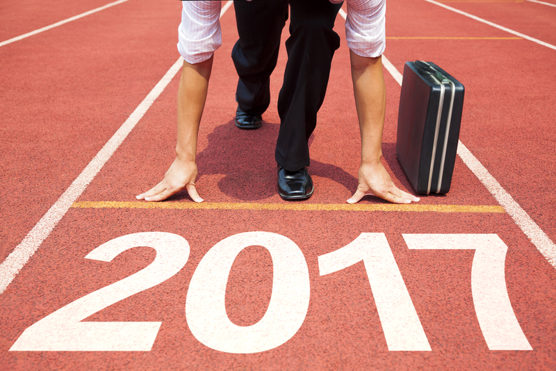 Businessman with briefcase at the starting line of 2017